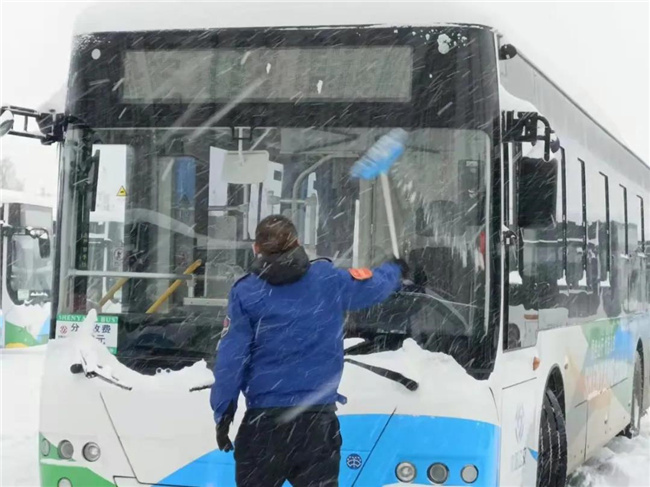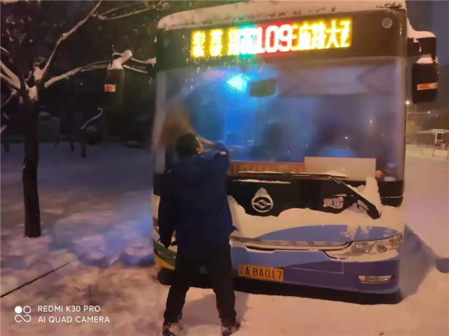 凌晨4點多,第一班車的駕駛員就已經(jīng)提前到崗,清掃積雪,預(yù)熱車輛...