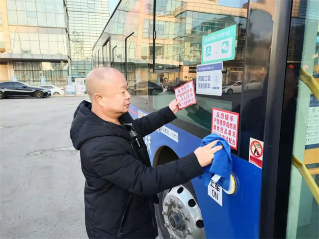 二分公司駕駛員檢查車(chē)內(nèi)安全設(shè)備,為乘客提供安全舒適的乘車(chē)環(huán)境。