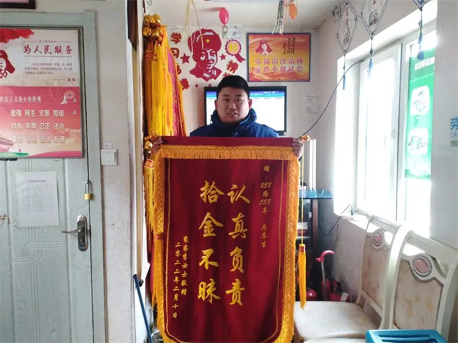 2月10日,258路車隊迎來一位熟悉的面孔,她帶著印有“認真負責 拾金不昧”的錦旗,說是要謝謝駕駛員房冬生。