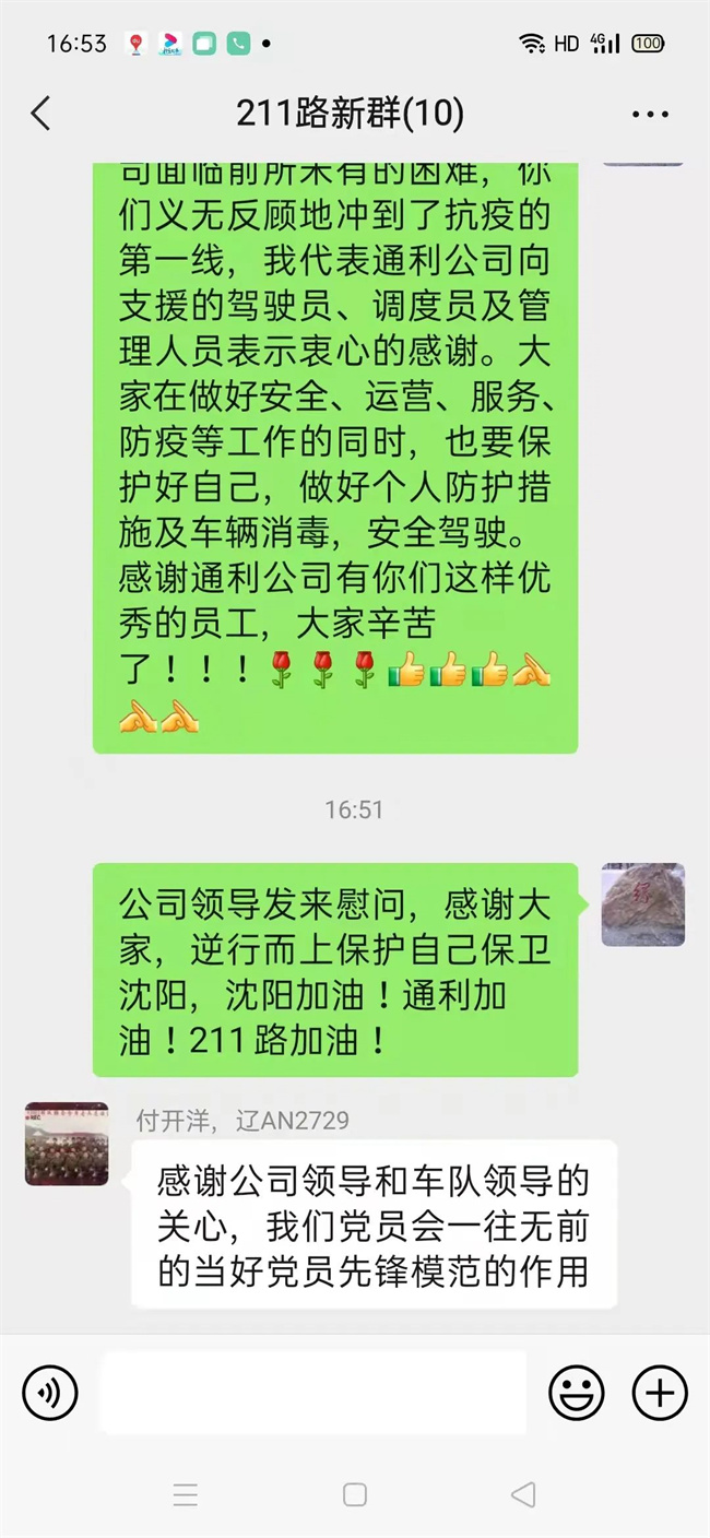 面對駕駛員的辛苦付出,公司通過微信群,向支援的駕駛員表達(dá)了公司的關(guān)心與慰問。大家說,看到公司的問候和關(guān)心,心里特別溫暖。駕駛員付開洋說:“感謝公司的關(guān)心,一定會一往無前發(fā)揮黨員先鋒模范作用?!?/p>