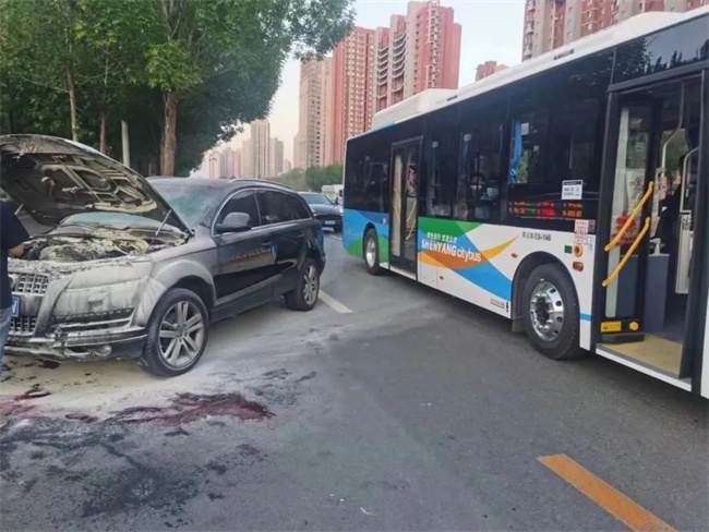5月20日傍晚,沈陽客運(yùn)集團(tuán)沈蘇公司154路駕駛員劉健偉駕駛車輛經(jīng)過渾南伊麗雅特灣車站附近時,發(fā)現(xiàn)停在右側(cè)車道上一輛小轎車冒出陣陣濃煙。