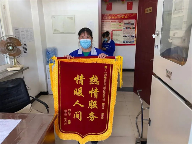 第二天,乘客劉女士專程來到260車隊,將一面寫有“熱情服務(wù) 情暖人間”字樣的錦旗交到了車隊并說道:“非常感謝車隊培養(yǎng)了這么優(yōu)秀的駕駛員,因節(jié)日期間急著補(bǔ)一批貨,又趕上家里缺人手,我才一個人前往五愛市場。本來還擔(dān)心駕駛員不會讓我上車,或者嫌棄我耽誤時間,沒想到遇到了兩位熱心腸的駕駛員,他們耐心細(xì)致的幫助我解決了困難,讓我倍感溫暖。為表感激之情,我特意趕制了一面錦旗了表寸心,謝謝你們!”