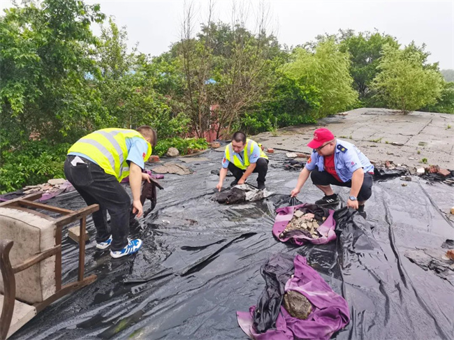 通利公司部分場區(qū)站務設施被暴雨損壞,工作人員及時修補、清理。
