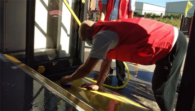 通運(yùn)公司志愿服務(wù)隊來到239路車隊,細(xì)化防控措施,在公交停車場對乘客候車區(qū)進(jìn)行不間斷消毒,同時協(xié)助公交駕駛員嚴(yán)格實(shí)行公交車返場后的集中消毒及車輛通風(fēng)、清潔等工作,特別是對車廂內(nèi)座椅、扶手等乘客易接觸的部位進(jìn)行深度消殺,做到不留死角、不留盲區(qū),全方位保障乘客出行安全。