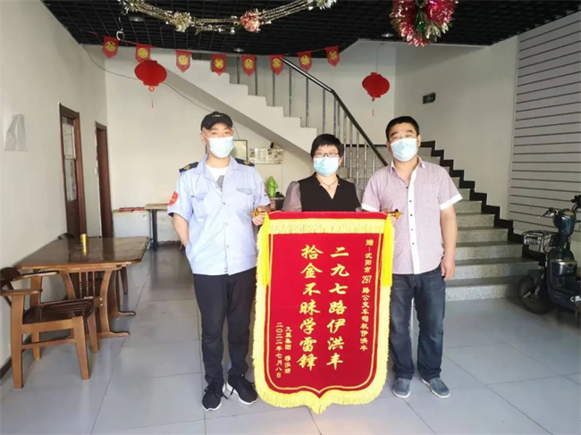 8月25日下午,市民薛英山懷著感激的心情給211、222路車(chē)隊(duì)送來(lái)了一面錦旗,上面寫(xiě)著“助人為樂(lè)大公無(wú)私 拾金不昧品德高尚”的字樣,他以這樣的方式表達(dá)著對(duì)211、222路車(chē)隊(duì)和駕駛員溫偉的感謝之意。