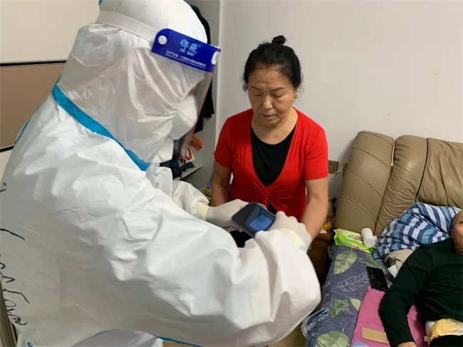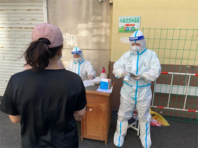 王眾介紹,轄區(qū)內(nèi)有一位外國友人身體不好,志愿者上門進行核酸檢測時,這位老外深受感動,一直在說“Thank you!”