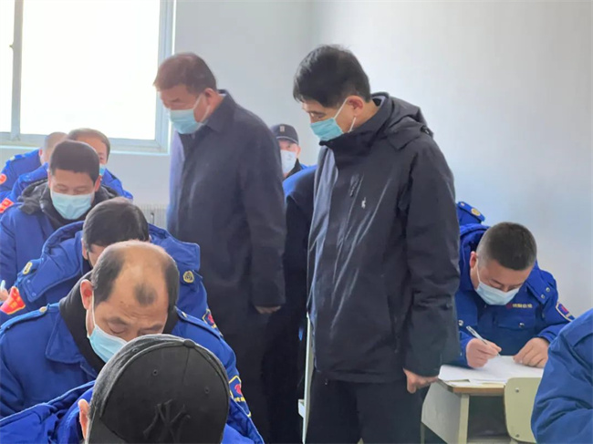 市城建交通農(nóng)林工會主席劉宗純在客運集團黨委書記董事長孟令軍的陪同下視察考場。