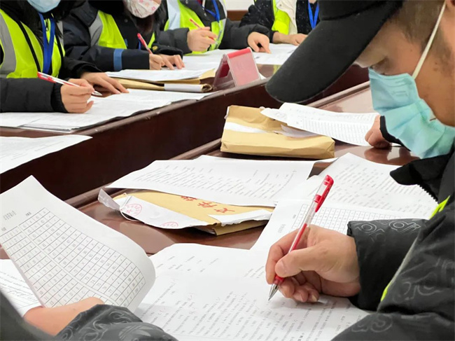 駕駛員筆答考試結(jié)束后,工作人員認(rèn)真開展閱卷工作。