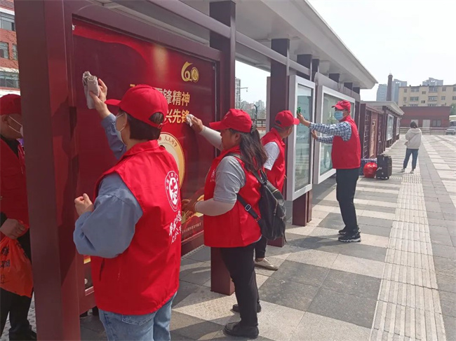 活動(dòng)中,志愿者們身穿紅馬甲、頭戴小紅帽,手中拿著抹布、清潔刷、水桶等清潔工具,對(duì)樞紐站內(nèi)的候車?yán)?、站臺(tái)等進(jìn)行集中大清掃。