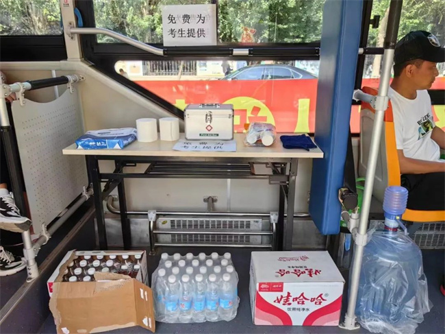 249路車隊隊長說:“我們作為志愿者為大家提供力所能及的幫助,祝各位考生取得好成績?!瘪{駛員王眾說:“車隊建隊以來就有了助考的傳統(tǒng),我們?yōu)榭忌图议L提供免費礦泉水,車內(nèi)還配備了急救藥箱,藥箱里有風(fēng)油精、創(chuàng)可貼、繃帶等常見應(yīng)急藥品。為了應(yīng)對突發(fā)狀況,高考前我還特意學(xué)習(xí)了急救知識?!?/p>