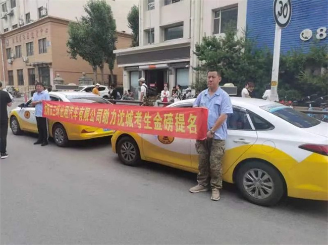 沈陽出租汽車股份公司所屬三環(huán)出租汽車公司在高考期間開展助力“愛心送考”活動。高考期間,公司4臺模范出租車在107中學(xué)考點為考生及家長提供免費接送服務(wù)。
