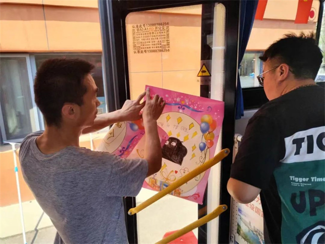 224路駕駛員王樹祥早早來到沈陽建筑大學(xué)附屬中學(xué)校門前,掛起“224車隊祝高考考生金榜題名”的橫幅,為考生加油鼓勁。