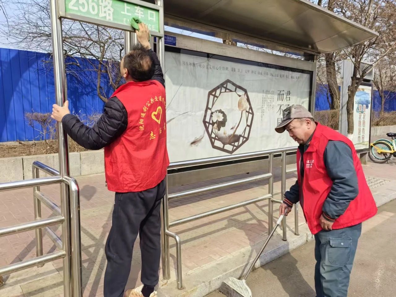 路過(guò)的市民看到志愿者忙碌的身影連連點(diǎn)贊,還有熱心市民主動(dòng)加入志愿隊(duì)伍出一份力。最終在全體黨員志愿者和熱心市民的共同努力下累計(jì)清理垃圾10余袋,處理小粘貼20余處,場(chǎng)區(qū)和候車?yán)刃l(wèi)生煥然一新。
