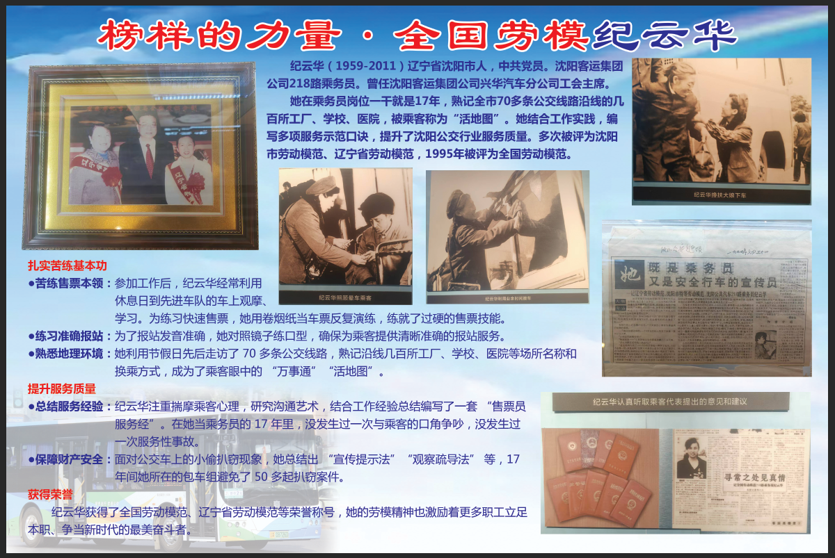 車隊精心打造全國勞模紀云華事跡文化墻,將"云華精神"融入日常管理。通過定期開展"勞模精神大講堂""崗位服務標兵"評選等活動,培育出拾金不昧、見義勇為等好人好事180余件,獲市級以上媒體報道27次。2024年創(chuàng)新設(shè)立"精神傳承導師制",由黨員骨干結(jié)對幫帶新駕駛員,確保勞模精神代際相傳。