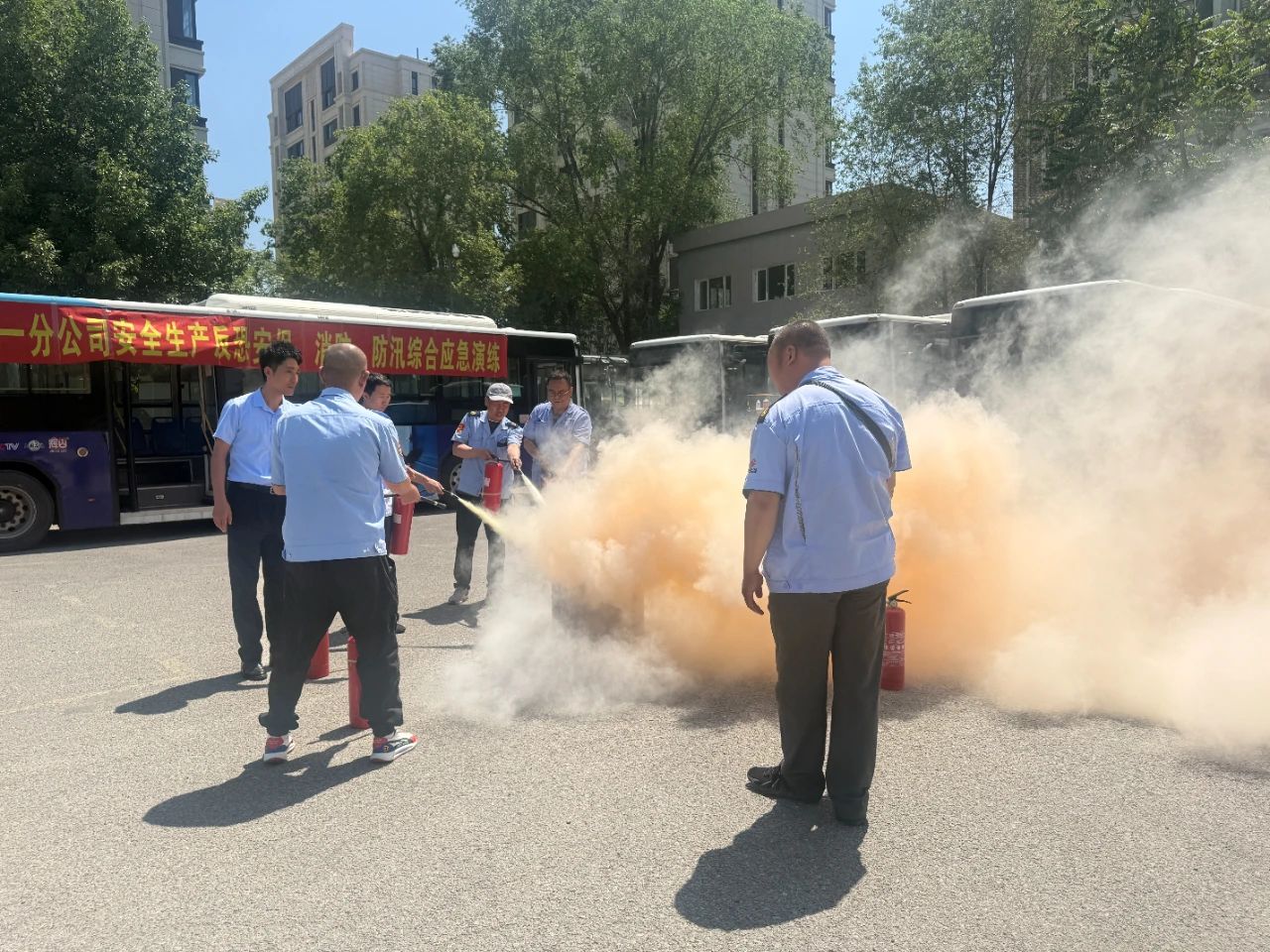 為提升職工消防反恐安保意識和應(yīng)急處置能力,一分公司于6月6日組織開展了安全生產(chǎn)、反恐安保、消防及防汛綜合應(yīng)急演練。市公交軌道分局王兆民處長、公司負責(zé)人、相關(guān)部門負責(zé)人及駕駛員代表參加。