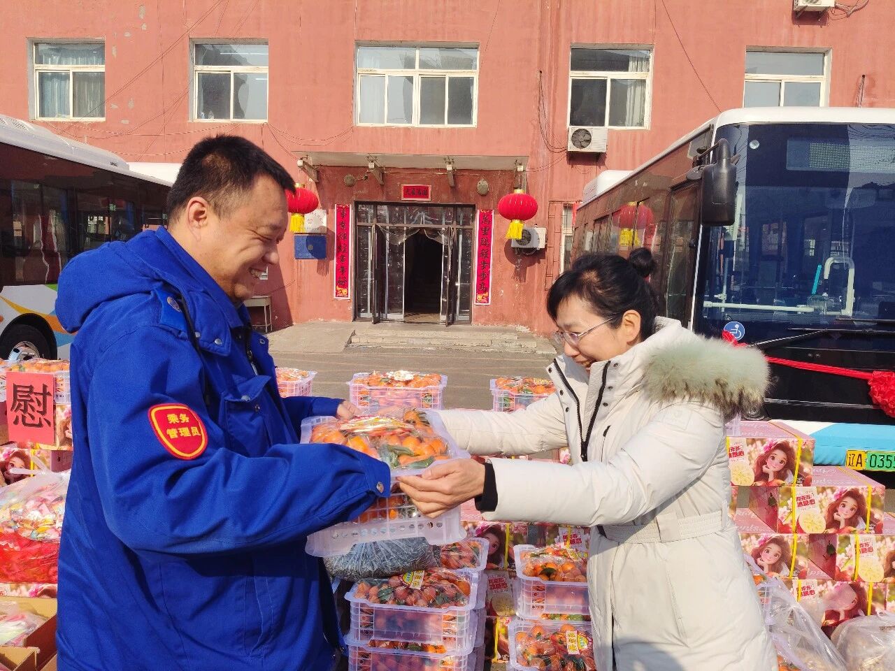2月13日上午,通運公司負責人深入各車隊,慰問堅守崗位的干部職工和駕駛員,為一線職工送上桔子、蘋果、花生、瓜子等慰問品,并與值班人員、駕駛員親切交流,叮囑大家行車時注意安全,度過一個平安祥和的春節(jié)。