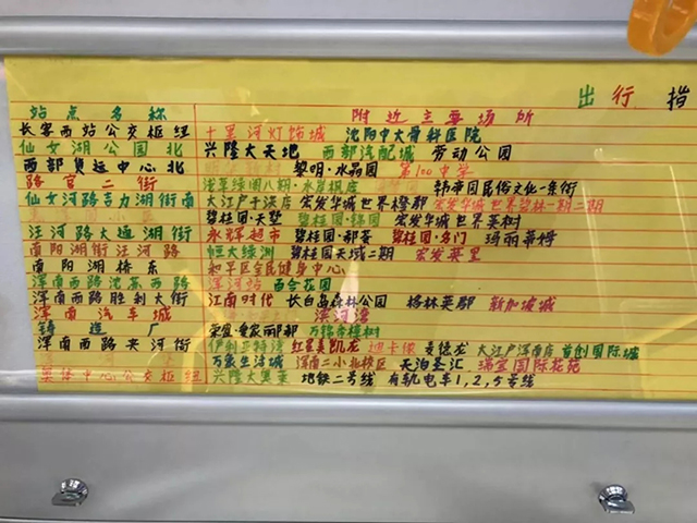 這張手繪的換乘圖是吳桐丞在平時的工作中了解站點及街路信息、再利用下班時間上網(wǎng)搜索線路,整理了兩三天的成果,這張圖清晰的標(biāo)注著公交線路每個站點附近的主要場所及換乘路線,為了讓乘客清晰辨認(rèn),還特意采用了不同色彩的筆來描繪。這張圖被發(fā)到網(wǎng)上,得到很多乘客的贊譽(yù),稱“這是我見過最暖心的司機(jī)”。